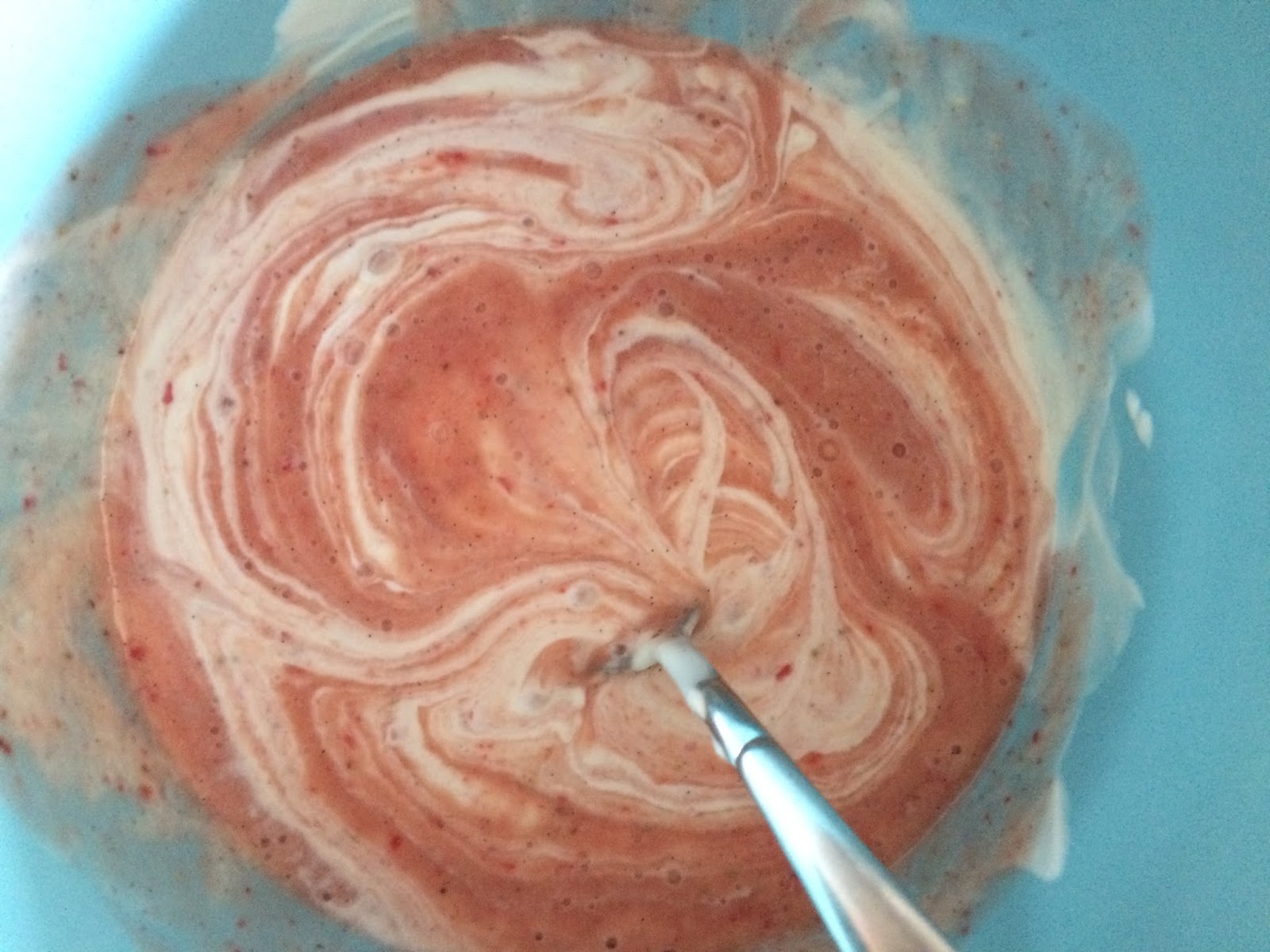 Das Ei und den Vanille-Extrakt einrühren. So lange rühren bis der Teig eine mayonaiseartige Konsistenz hat (ca. 30 Sek. – 1 Min.).