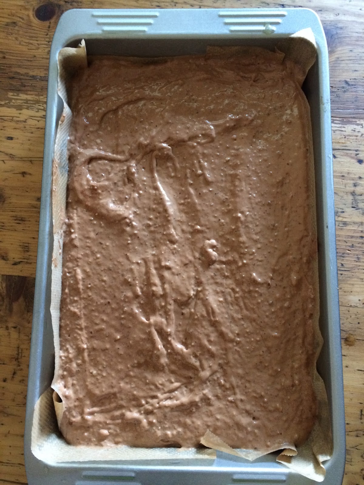 Mehl, Kokosmehl, Stärke, baking soda und Salz in separater Schüssel vermischen und zur Buttermischung geben. Bei langsamer Geschwindigkeit gerade so lange rühren, bis das Mehl eingearbeitet ist. Zum Schluss Schokolade und Erdbeeren mit einem Holzlöffel oder Teigschaber einrühren.