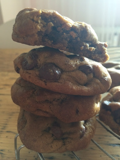 Vorgestern habe ich mir das folgende Rezept ausgedacht und musste es unbedingt direkt ausprobieren. Dazu muss ich gestehen, dass ich ein absoluter Cookie-Fan bin. Ich nutze ganz bewusst den amerikanischen Ausdruck, da ich sie liebe: Diese großen, etwas formlosen Cookies mit ihrer soften, fudgy, chewy Konsistenz! Bei der Beschreibung hat das amerikanische Vokabular einfach jahrelangen Vorsprung…