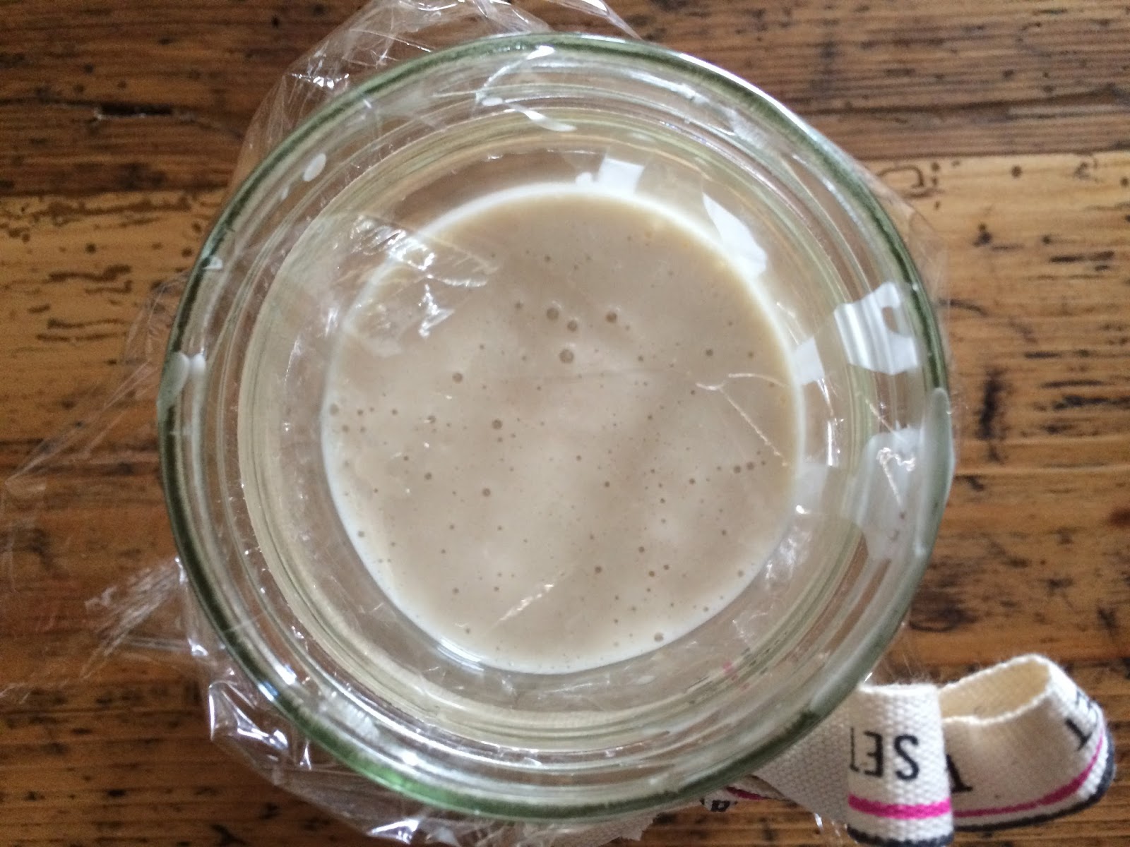 also umrühren und ab in ein ausgewaschenes Marmeladenglas (o.ä.) mit Herrmann, mit Folie abdecken und in den Kühlschrank mit ihm. In die Folie mit einer Gabel einige Löcher einstechen – Herrmann will´s zwar kalt, aber atmen muss er trotzdem. Er geht jetzt erstmal nicht mehr weiter auf, so dass das Glas nicht so groß sein muss.
