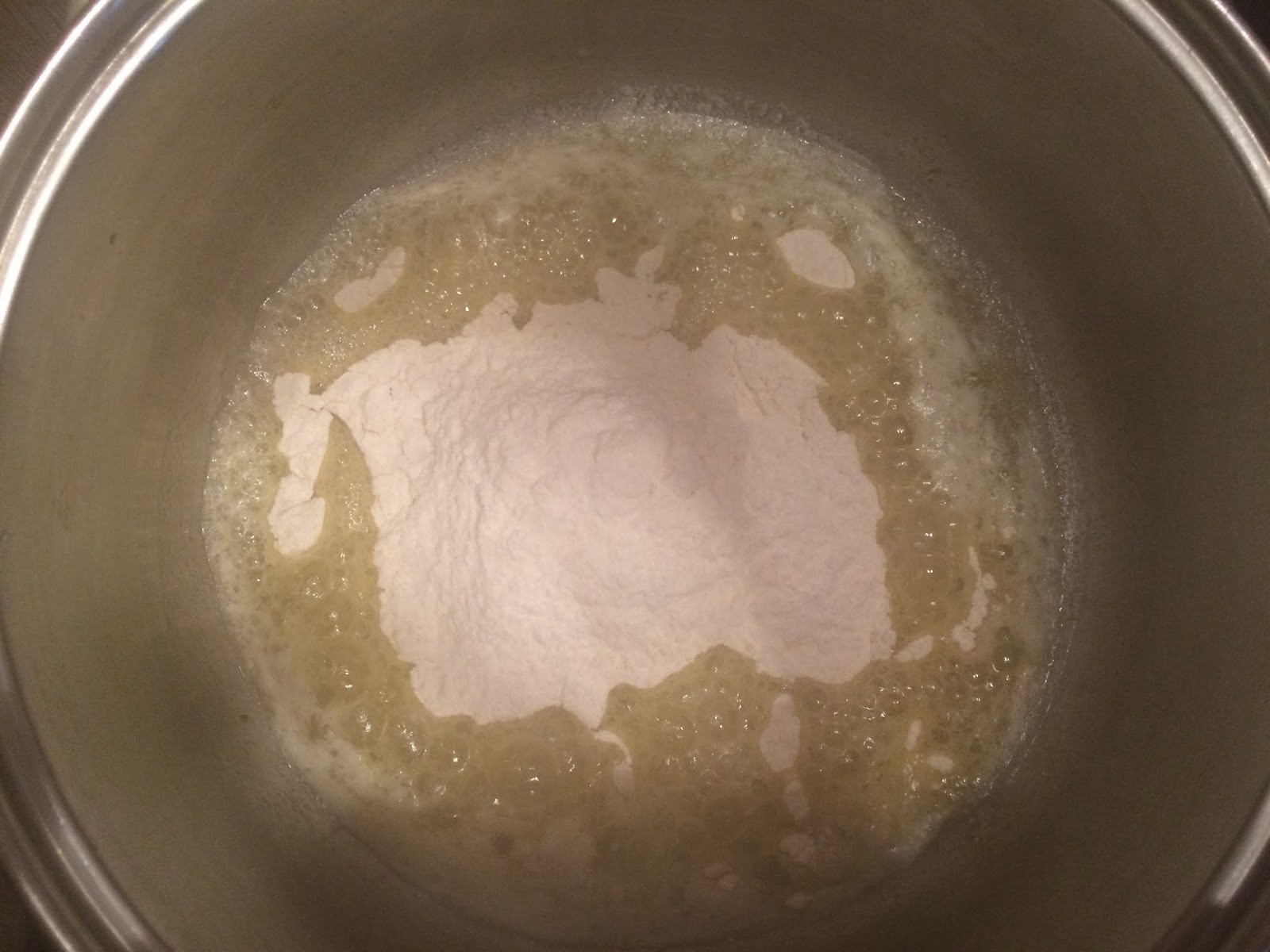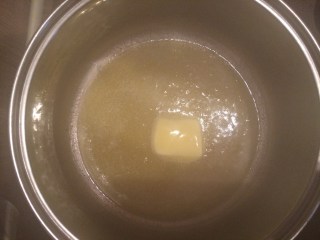 Bei niedriger Wärmezufuhr schmelzen lassen. Dann Herd ausschalten, Topf aber auf der Platte lassen.