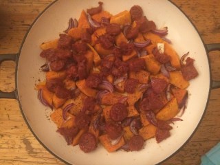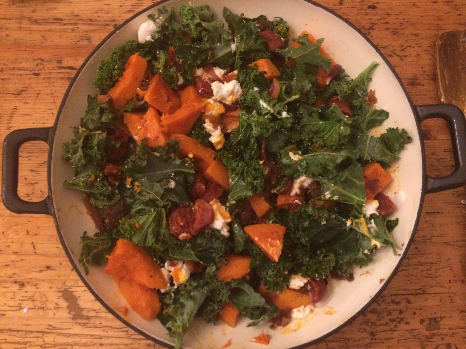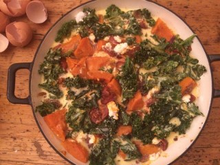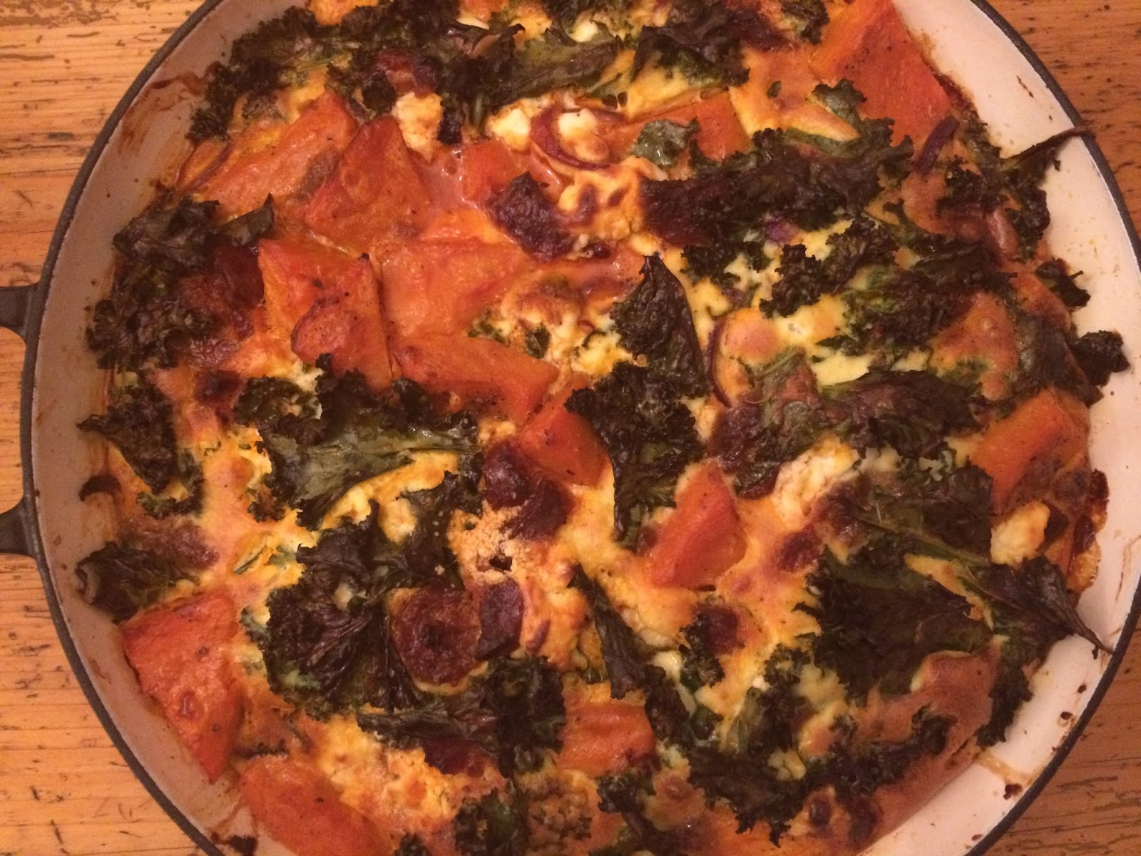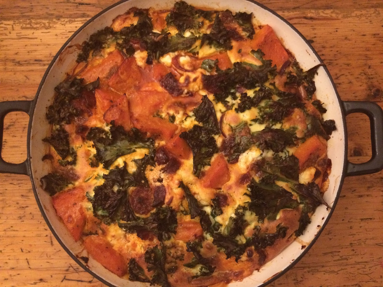Hokkaido-Frittata mit Grünkohl und Chorizo
