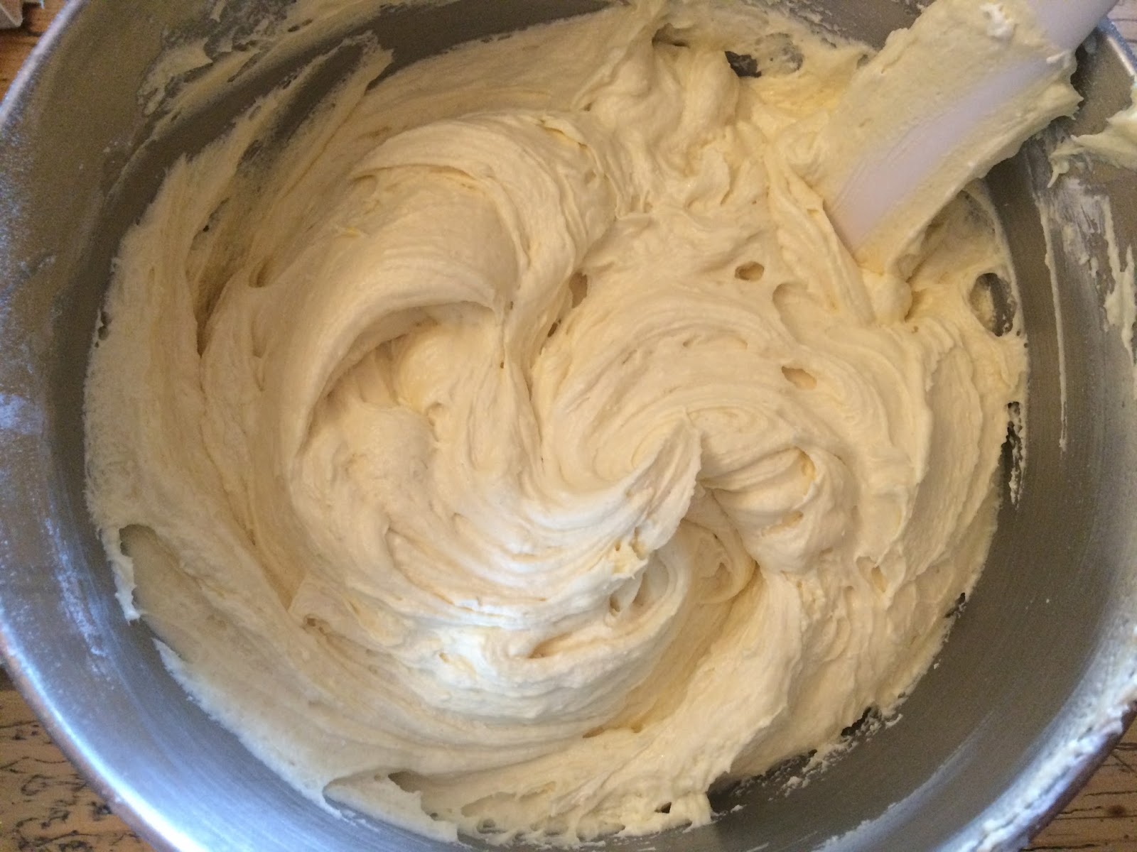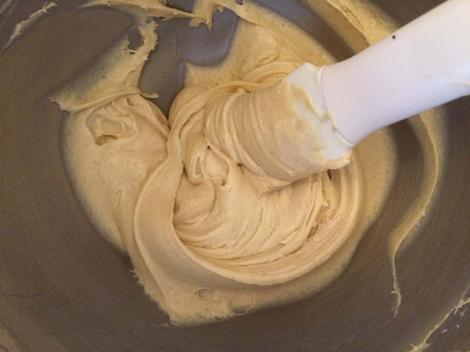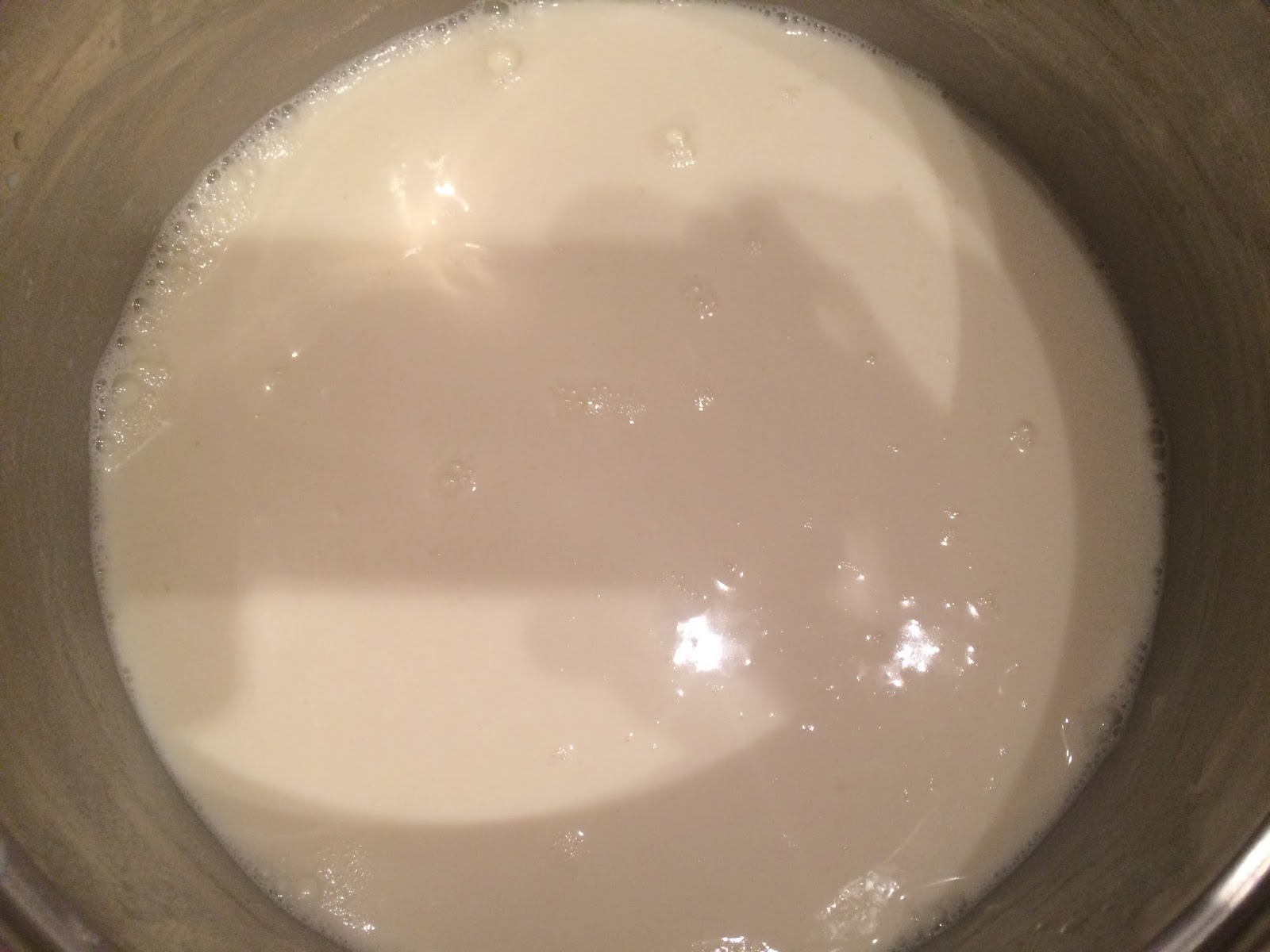 …. mit dem Mixer verrühren, Puderzucker, Vanilla, Salz und Milch dazugeben…..