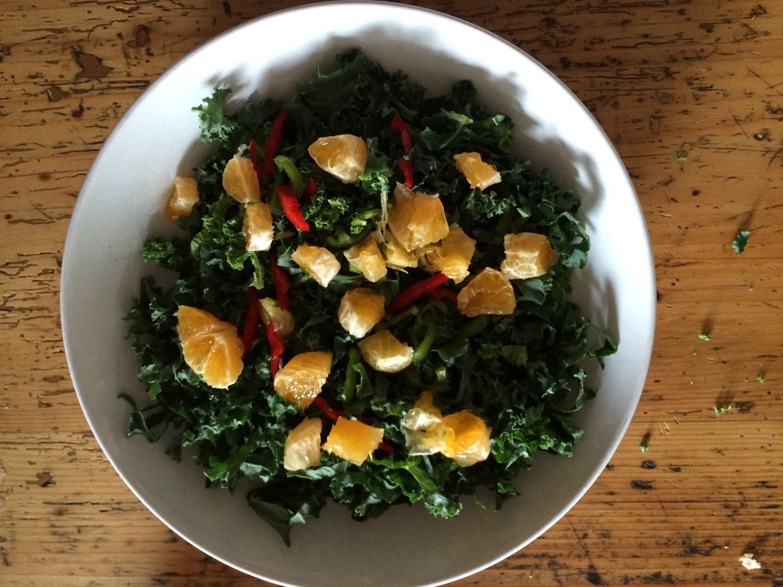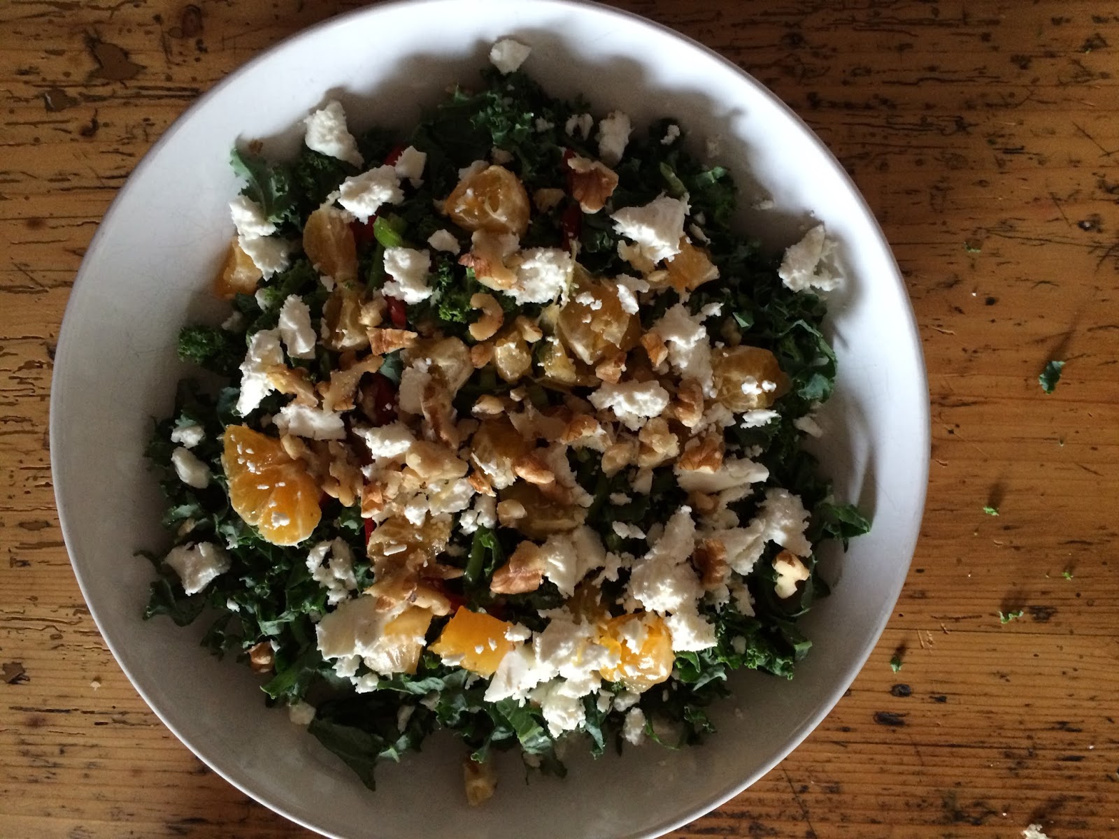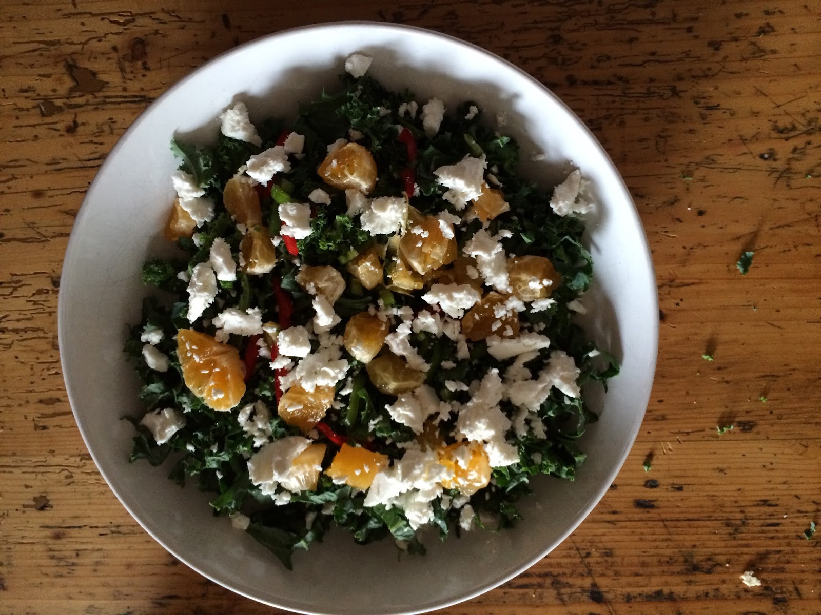 Grünkohlsalat mit Zitrusfrüchten und Schafskäse