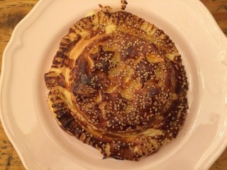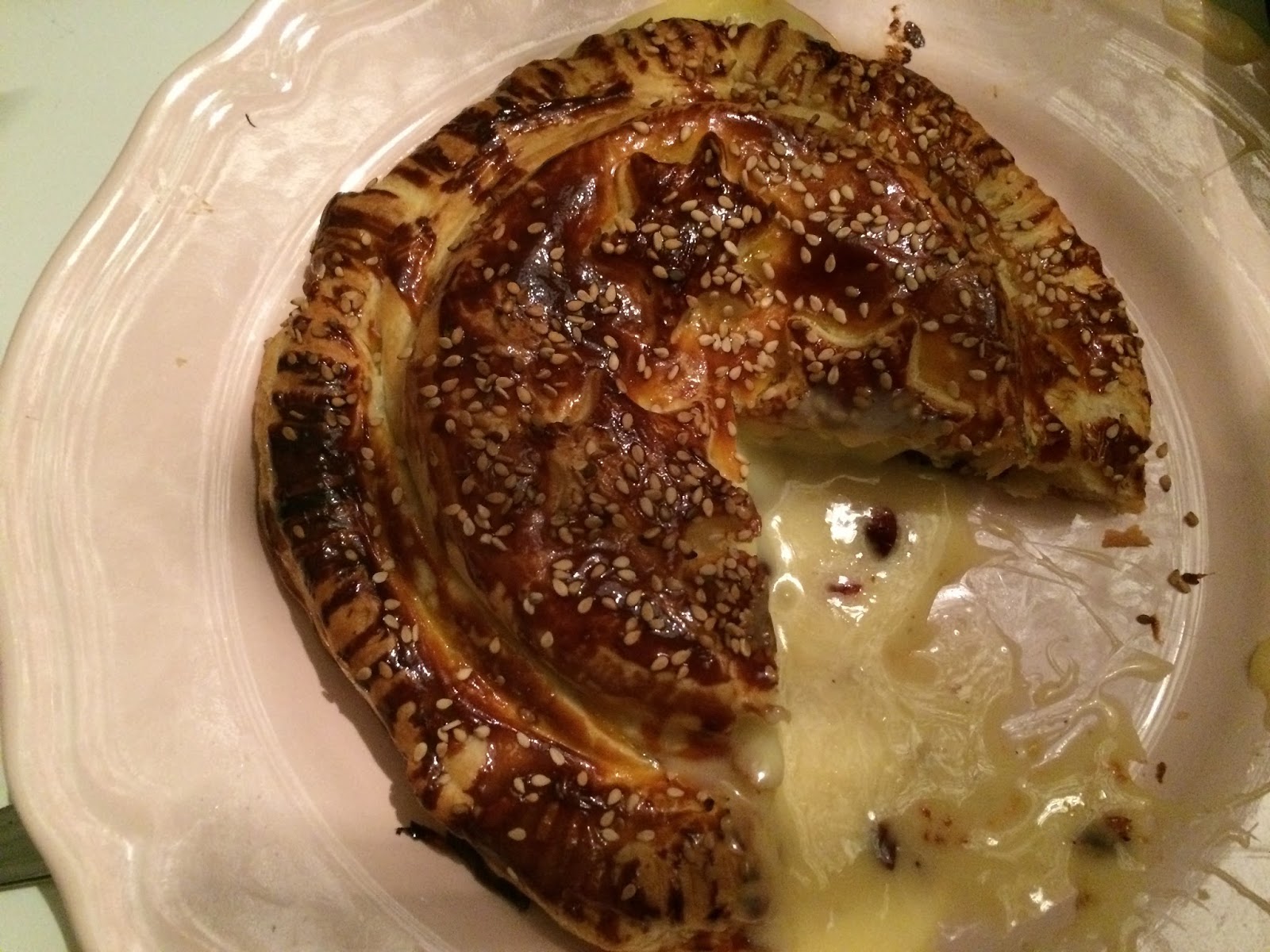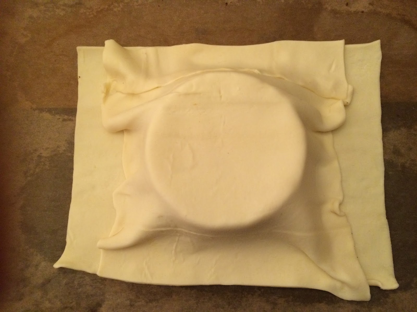In Blätterteig gebackener Camembert mit Preiselbeeren