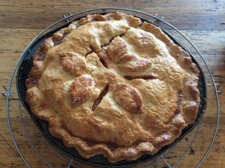 Ich war bei der Zusammenstellung des Rezepts reichlich großzügig, so dass ich mit einem wirlich großen Apfelkuchen (s. Bild) und zusätzlich noch 8 Apfelmuffins belohnt wurde. (Die Nachbarn und Kollegen haben sich gefreut….). Da aber nicht jeder eine Großfamilie oder die halbe Nachbarschaft versorgen möchte, veröffentliche ich hier die halbierte Version des Rezepts, die prima in eine 26cm-Springform passt.