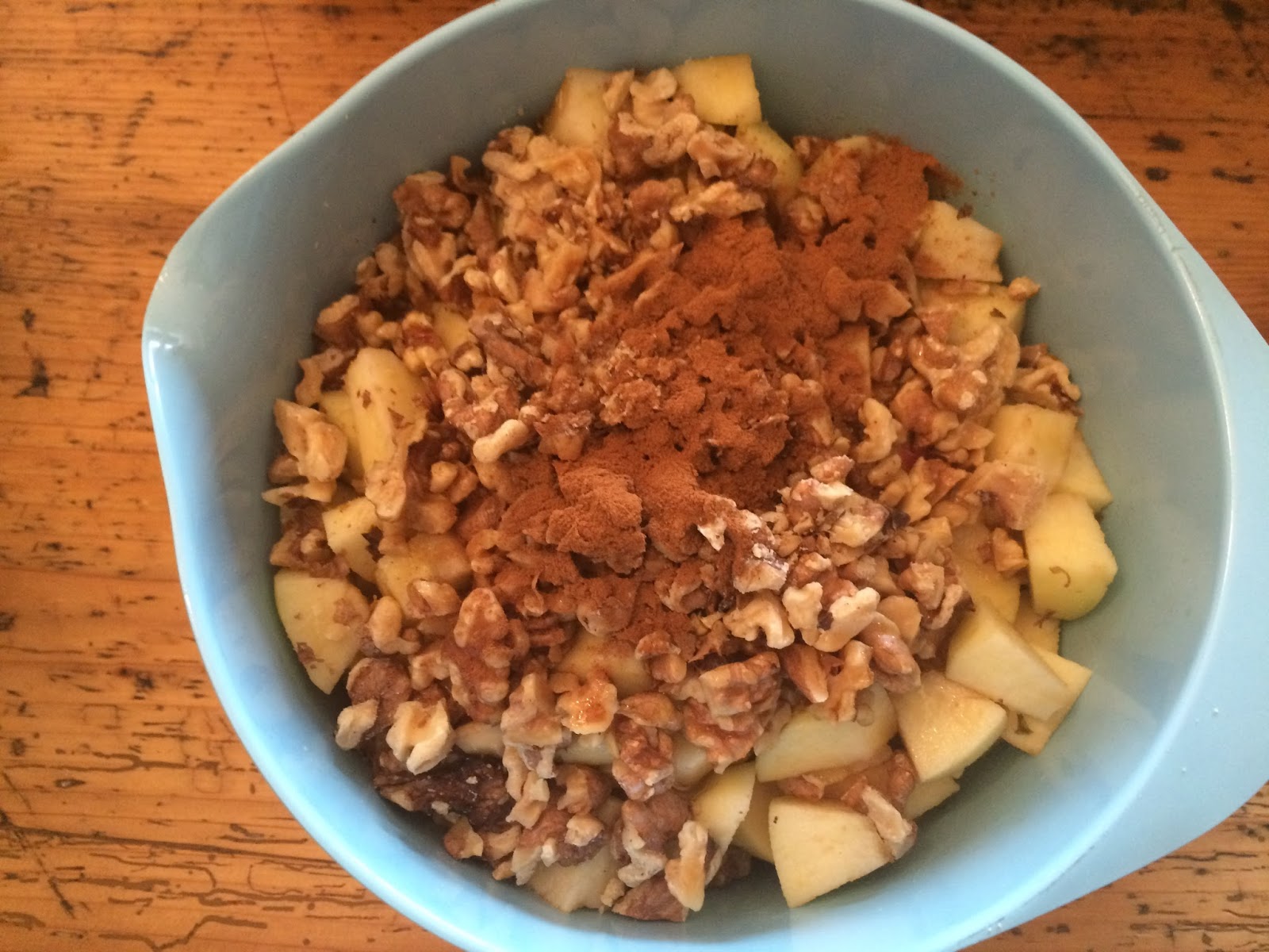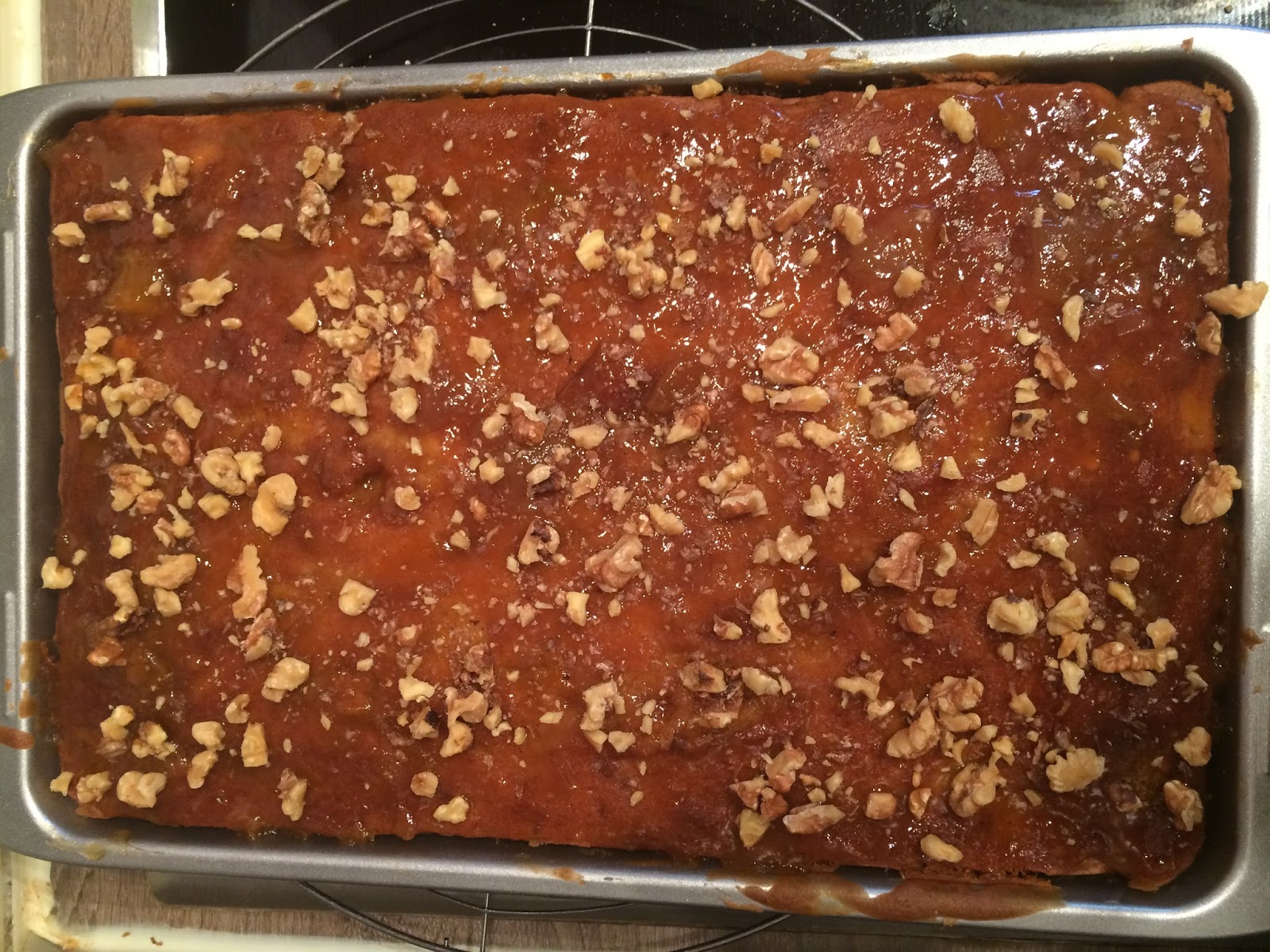 Saftiger Apfelkuchen mit gerösteten Walnüssen