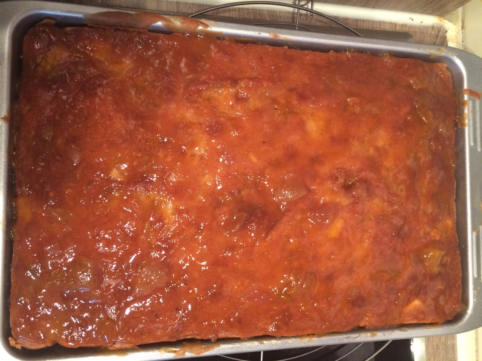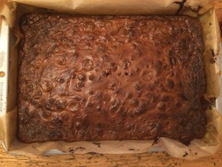 Die Oberfläche sieht teilweise etwas dunkel aus. Das schmeckt man später aber nicht. (Wenn euch das stört, könnt ihr ca. 15 Minuten vor Ende der Backzeit die Form mit Alufolie abdecken. Evtl. verlängert sich die Backzeit dann etwas.) Mindestens 15 Minuten auf einem Kuchengitter abkühlen lassen, dann für 7-8 Stunden oder über Nacht in den Kühlschrank stellen.