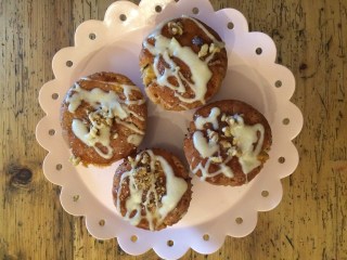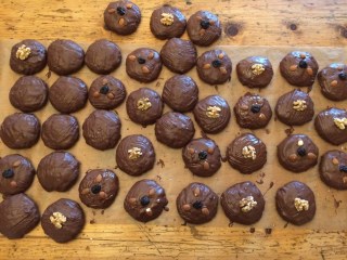 Für die Deko benötigen wir Aprikosenkonfitüre, Puderzucker, Sahne und nochmal geröstete Walnüsse.