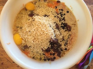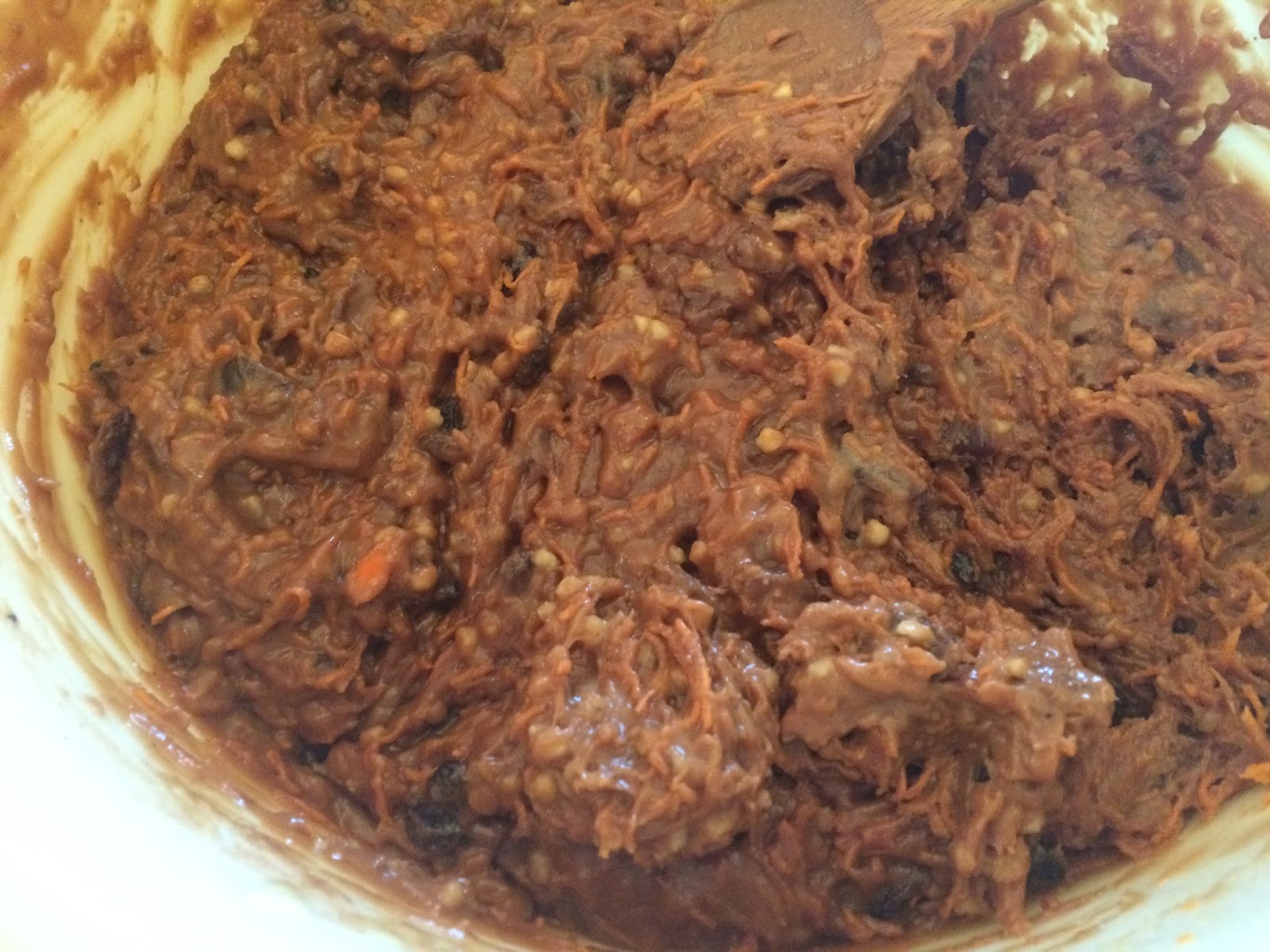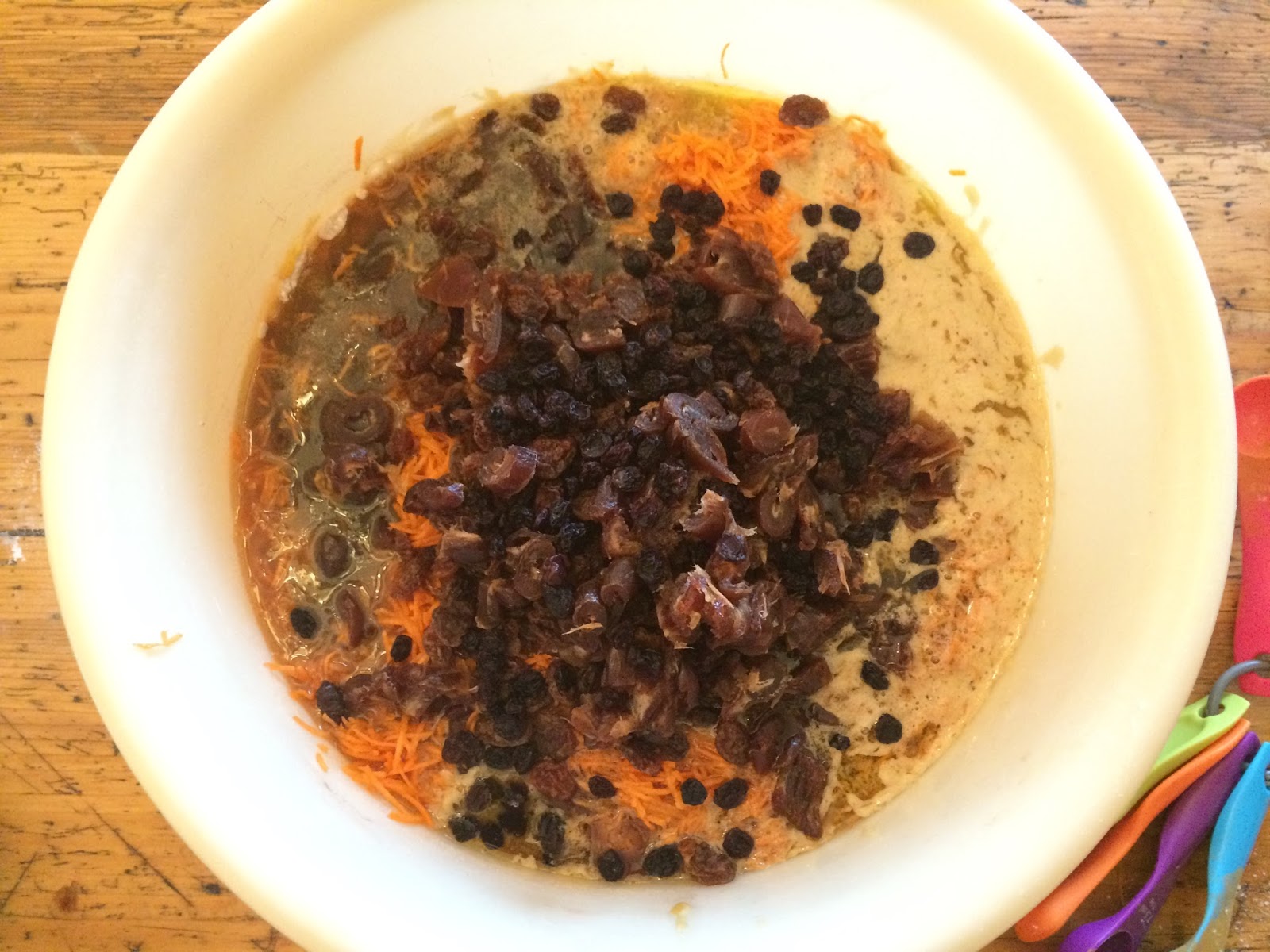 Lebkuchen mit Möhren, Rosinen und Datteln