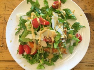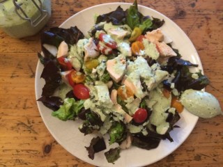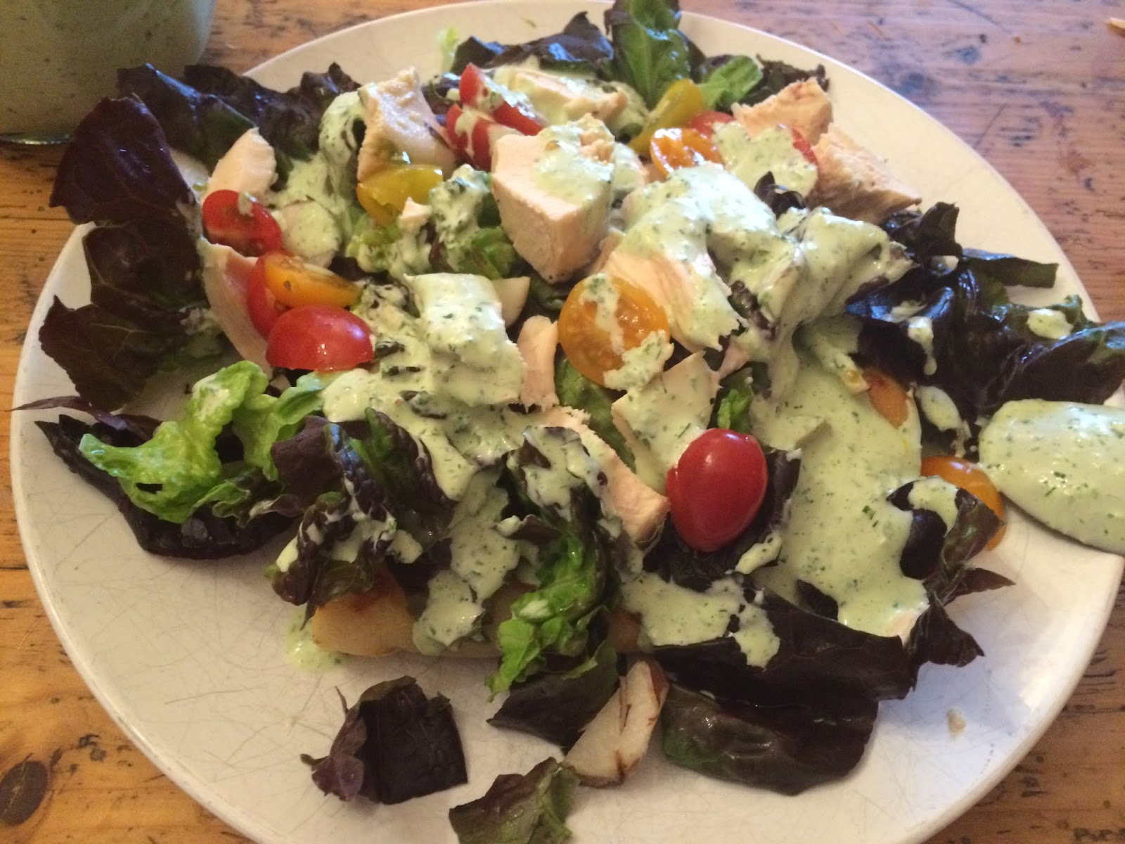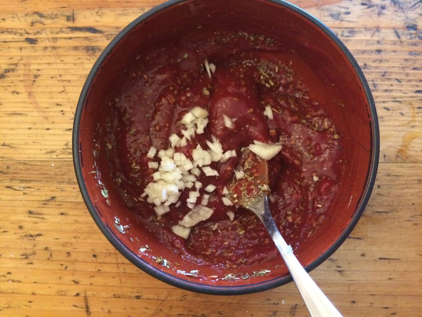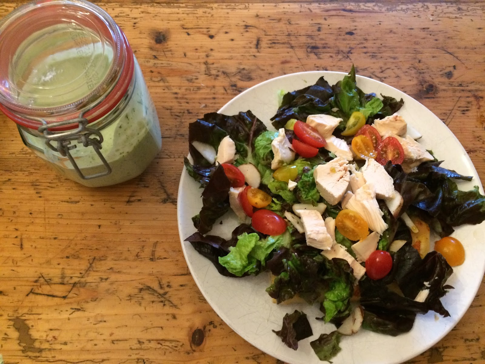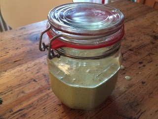 Wir brauchen Knoblauch, Anchovis, Saure Sahne, Mayonnaise, hellen Essig, Salz, Zucker, Chilipulver, Pfeffer und eine Zwiebel. An frischen Kräutern kommen noch glatte Petersilie, Schnittlauch und Estragon dazu. Das war´s.