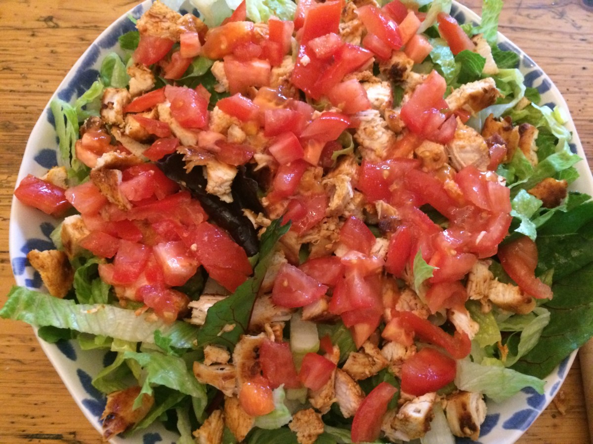 Veröffentlicht 21. August 2016 in 3264 × 2448 in Taco-Salat mit homemade Ranch-Dressing, Hähnchen und Nacho-Chips