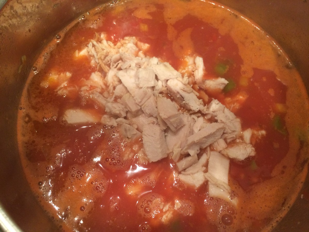 Veröffentlicht 28. Oktober 2016 in 3264 × 2448 in Cremige Nudelsuppe mit Putenfleisch und Tomaten