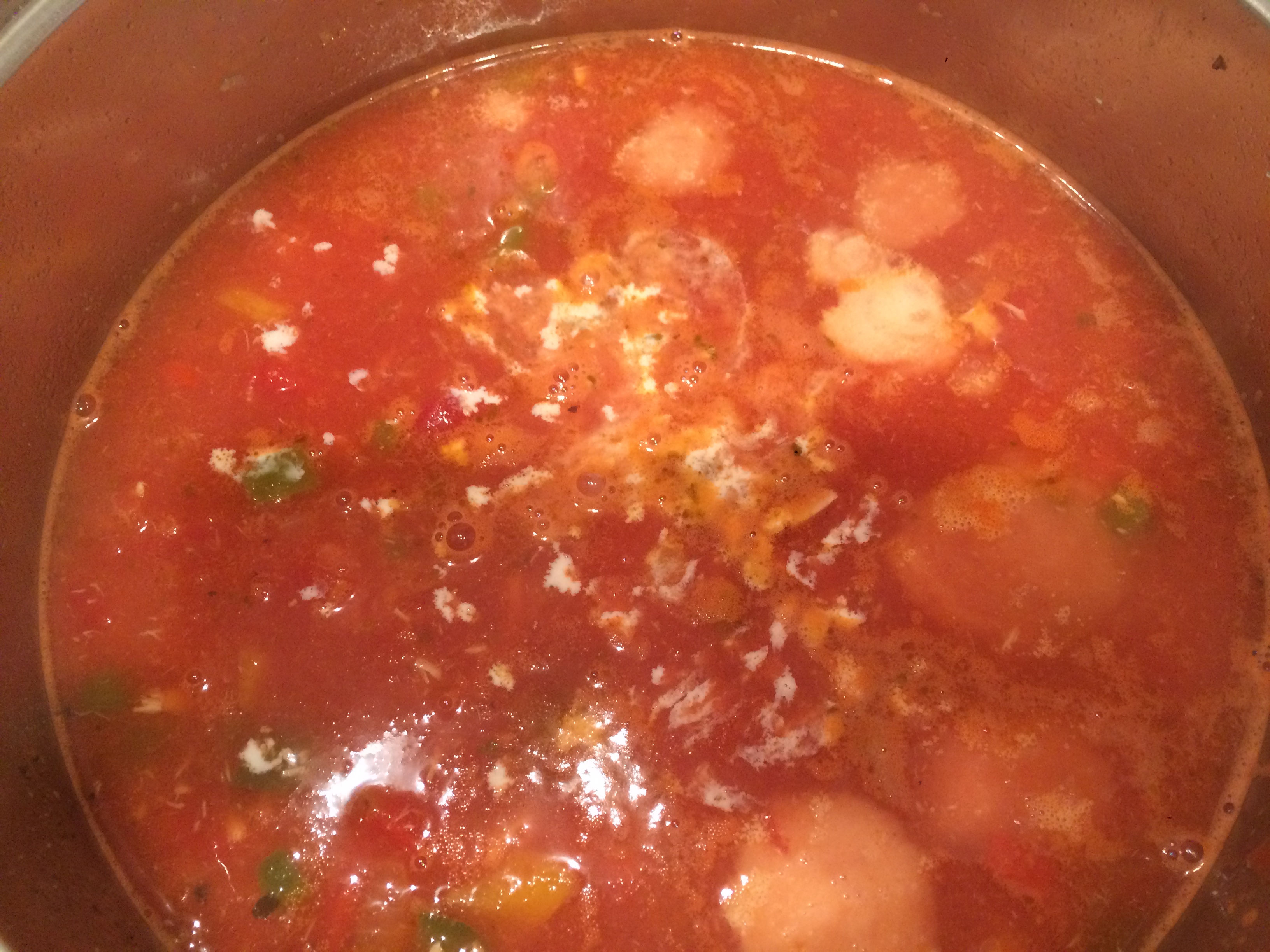 Veröffentlicht 28. Oktober 2016 in 3264 × 2448 in Cremige Nudelsuppe mit Putenfleisch und Tomaten