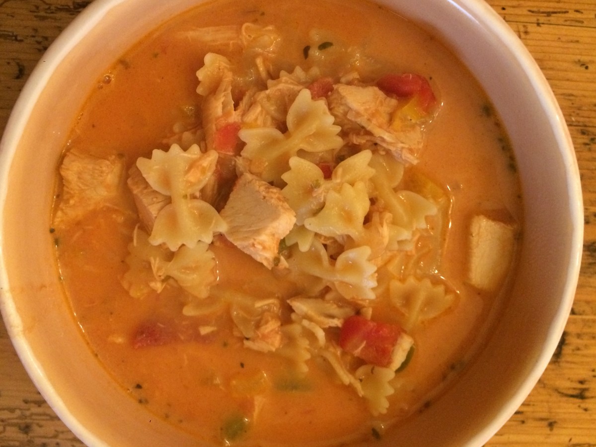 Veröffentlicht 28. Oktober 2016 in 3264 × 2448 in Cremige Nudelsuppe mit Putenfleisch und Tomaten