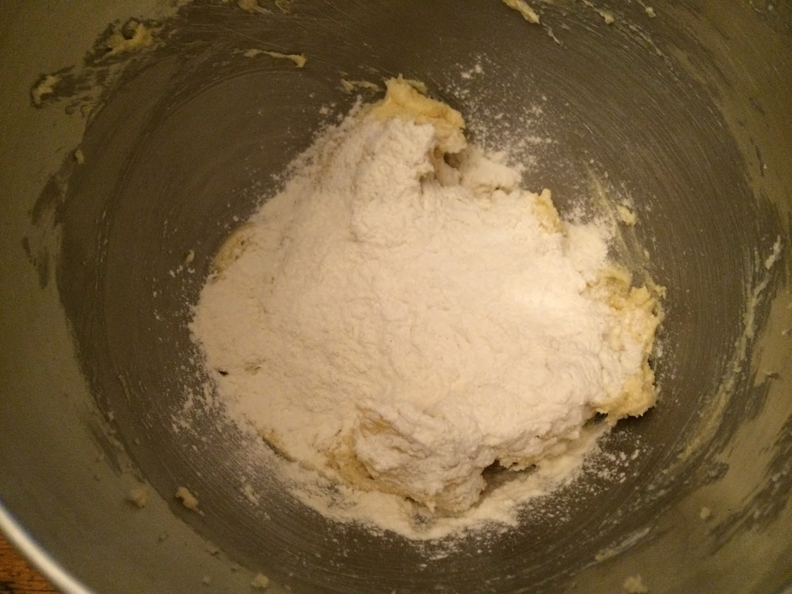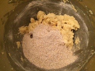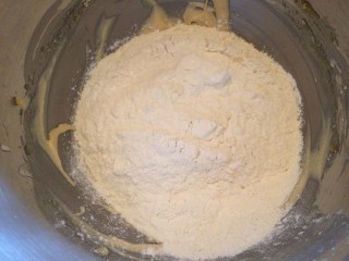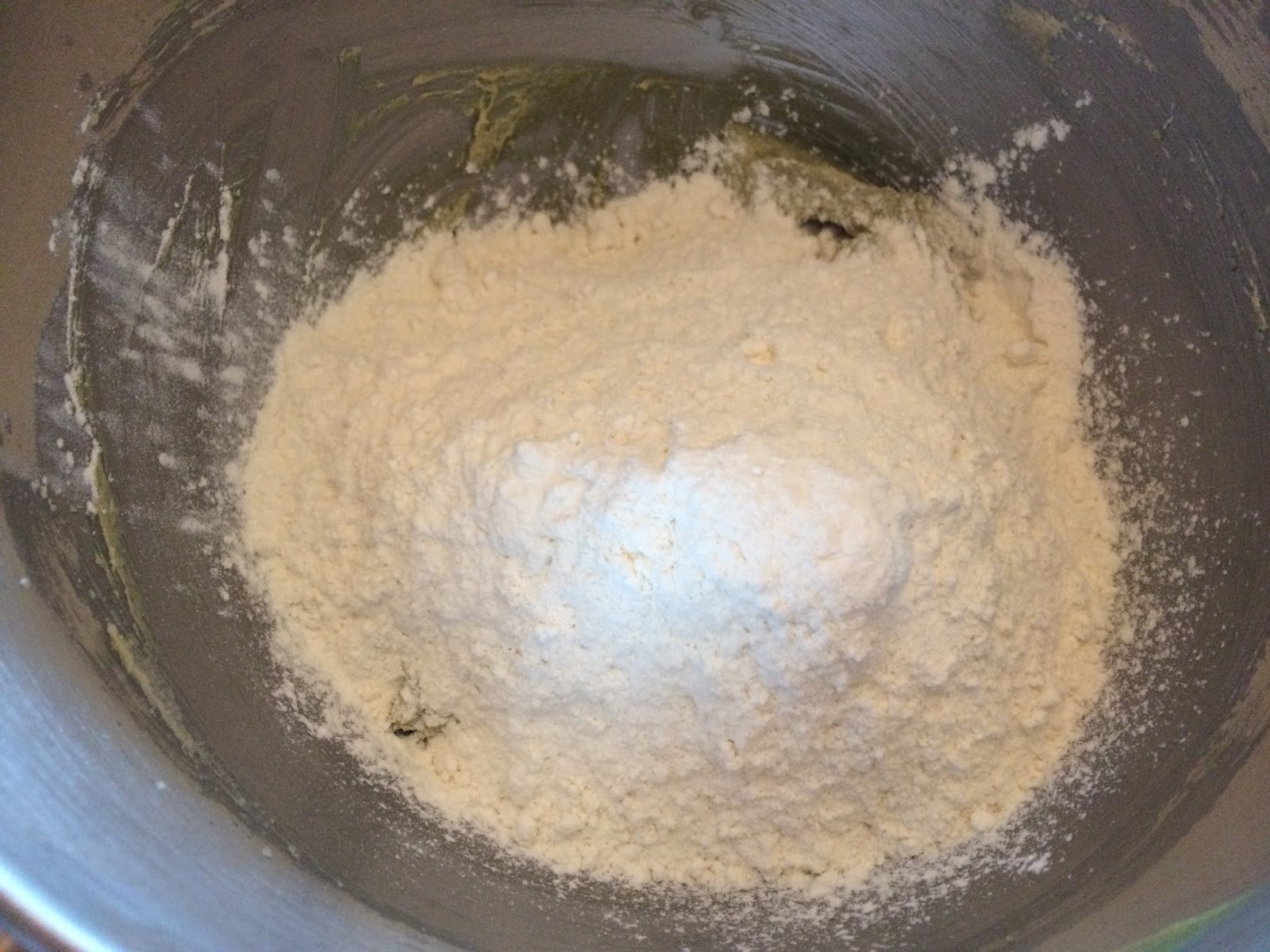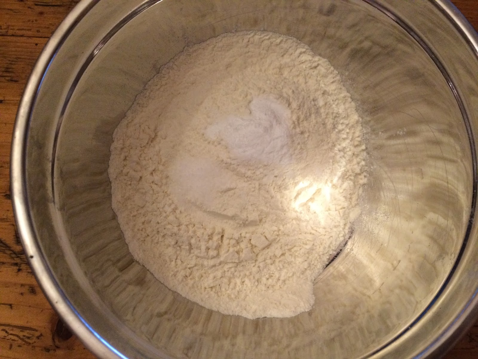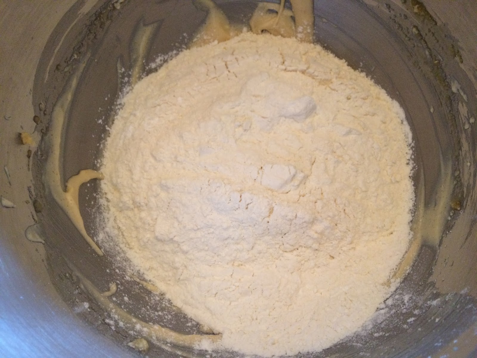 In einer separaten Schüssel Mehl, Soda (Backnatron), Stärke und Salz mischen und zum Teig geben.