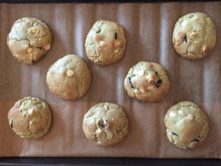 Etwa 8 – 10 Minuten im Ofen (mittlere Einschubleiste) backen. Die Cookies sehen noch etwas unfertig aus. Auf keinen Fall zu lange im Ofen lassen!