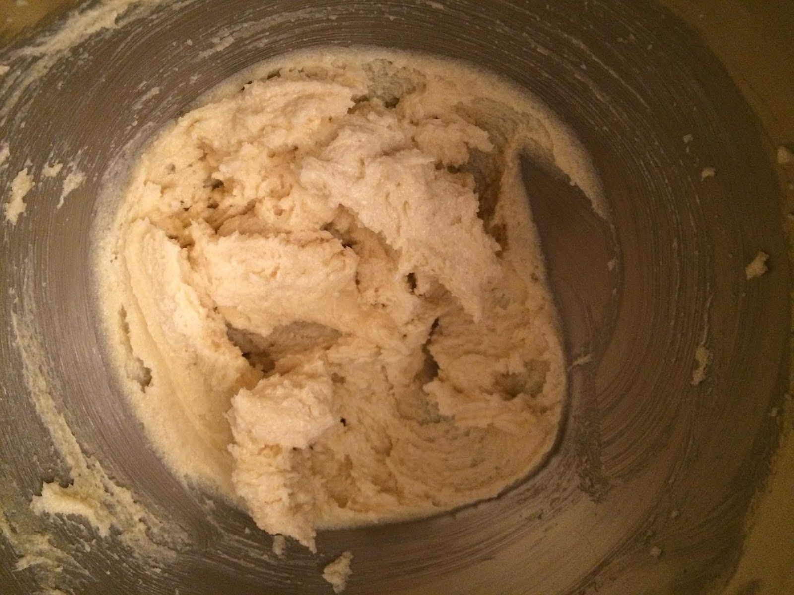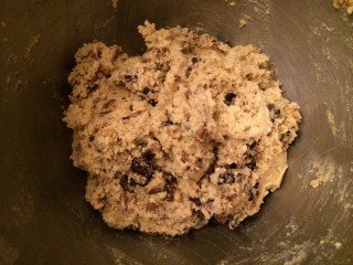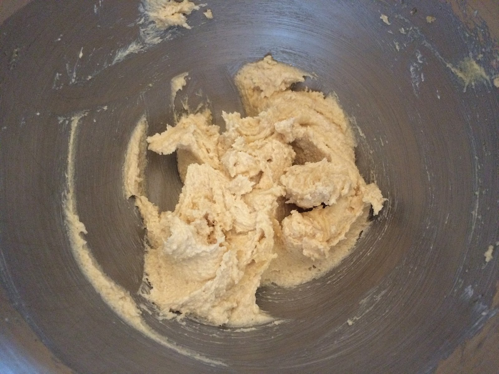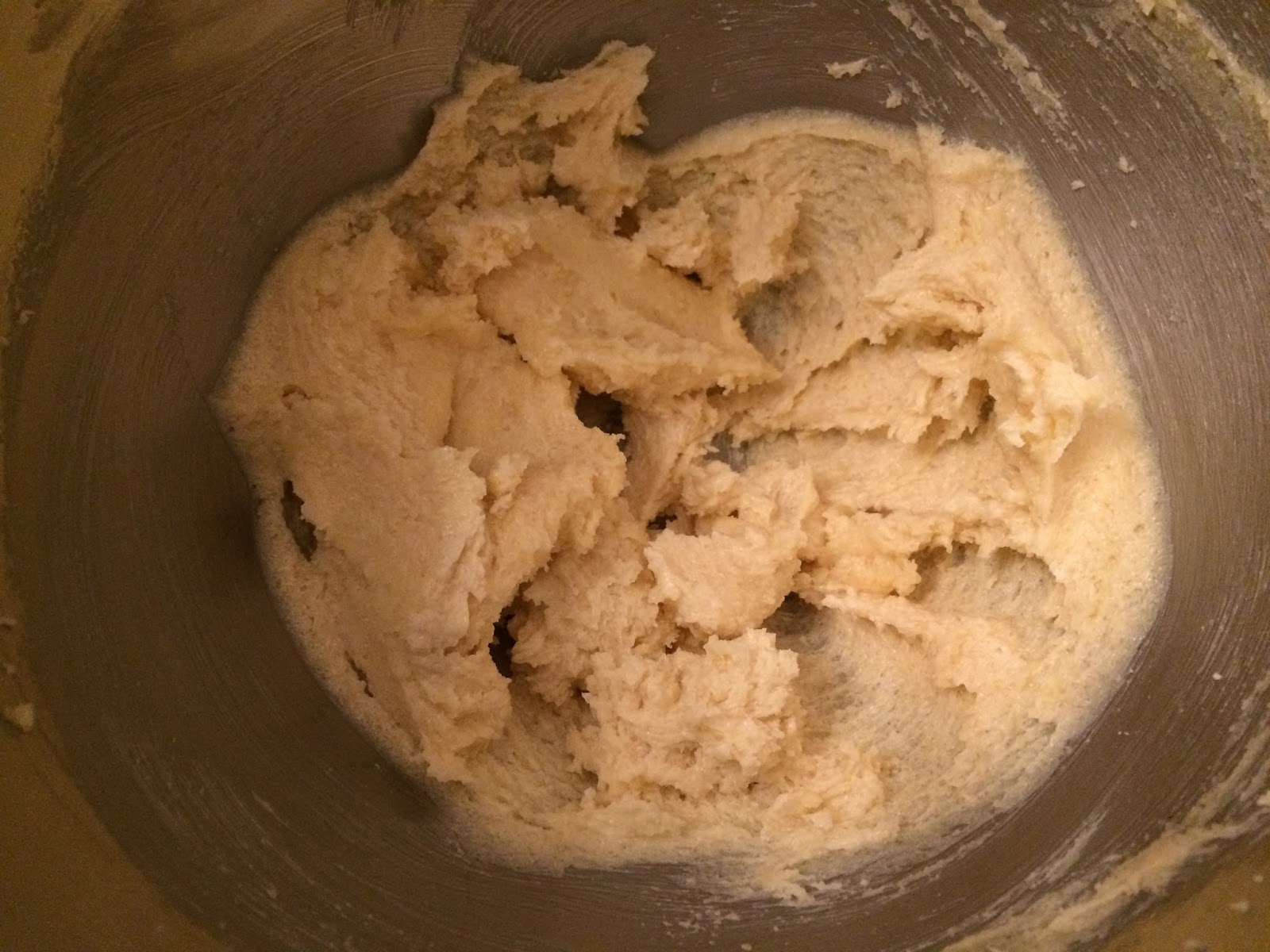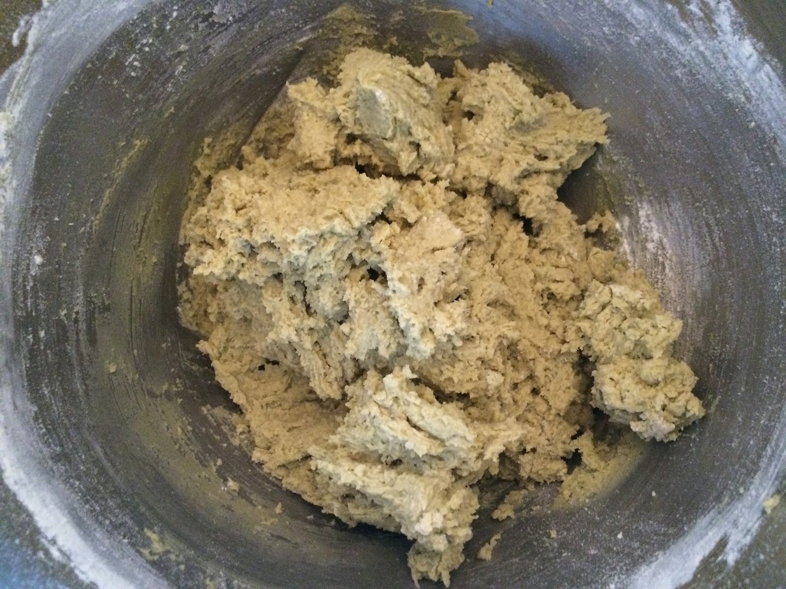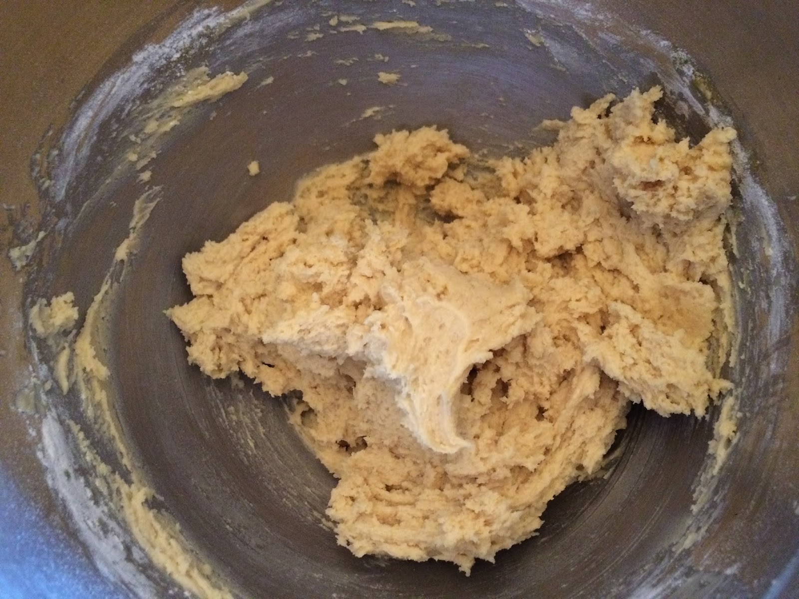 …..und zu einem Teig verkneten. Nicht zu lange kneten, lieber den Teig noch kurz mit den Händen durchkneten.