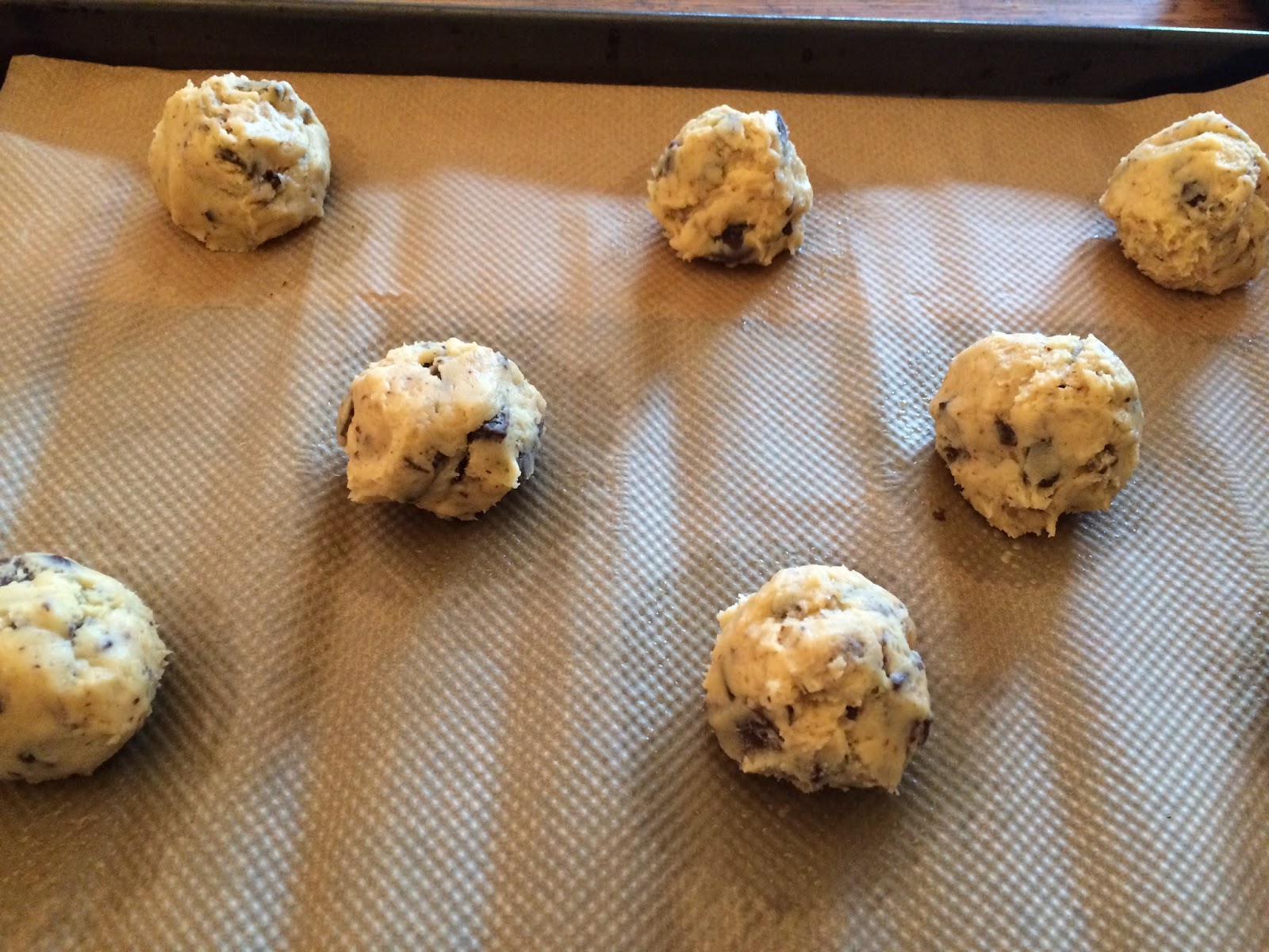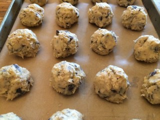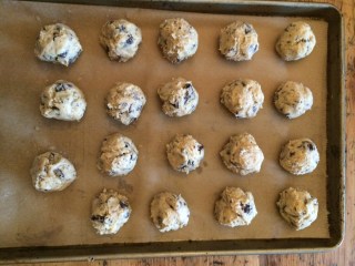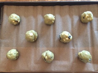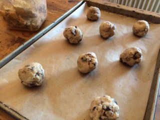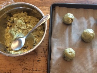 Ca. Golfball-große Kugeln formen und auf ein mit Backpapier ausgelegtes Blech legen.