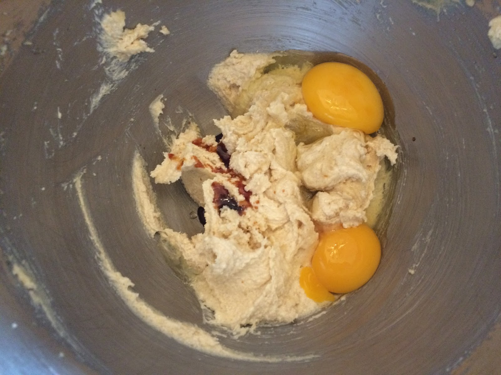 Eier und Vanille dazugeben, nur kurz verrühren.