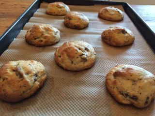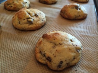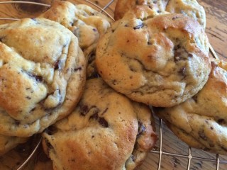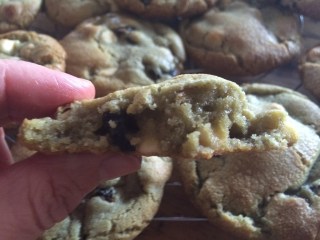 Hier seht ihr links die sehr weich gebackenen und rechts einige Cookies, die ich länger im Ofen hatte.