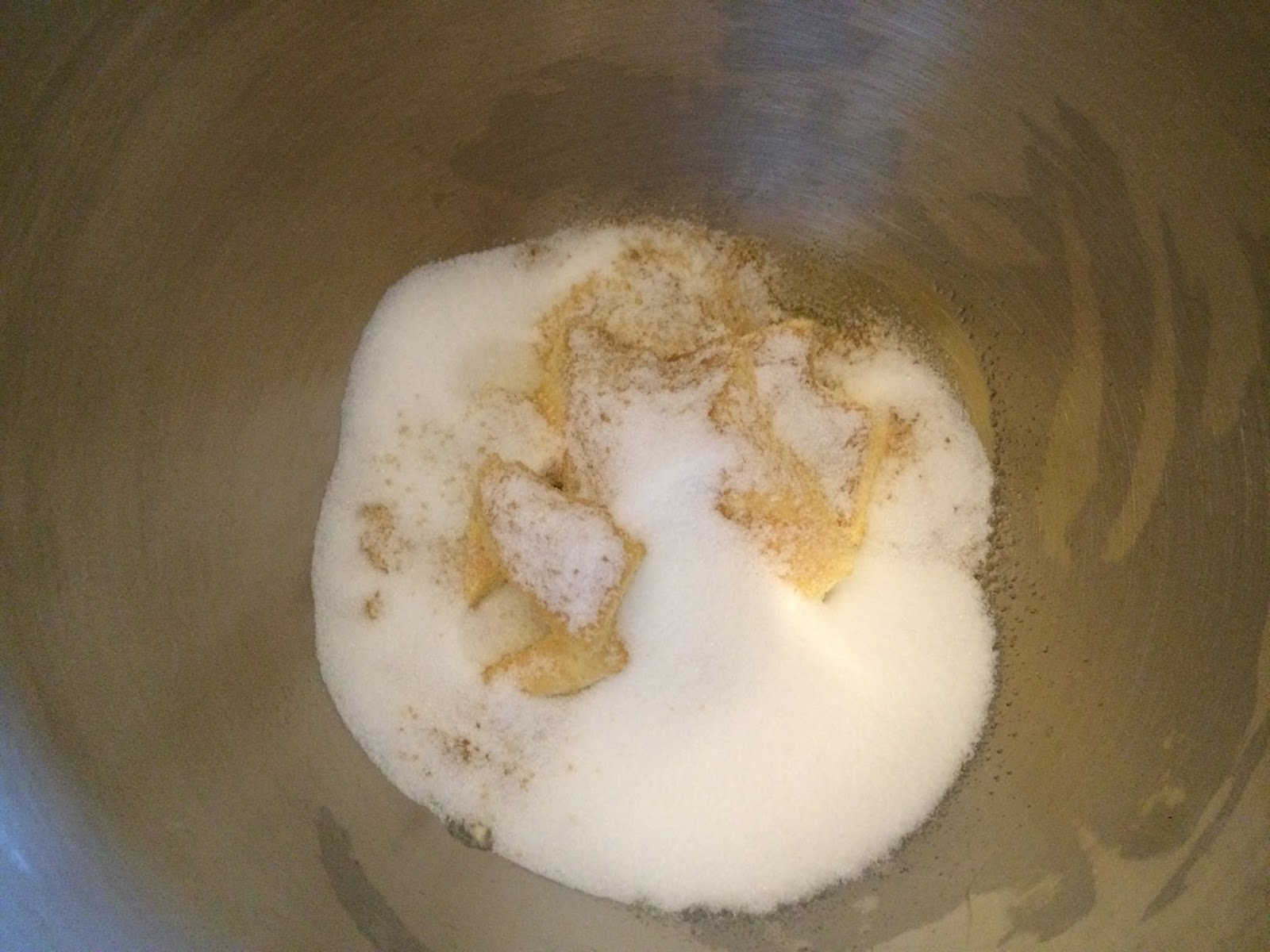…und Butter, Zucker und Eigelb in eine große Rührschüssel geben….