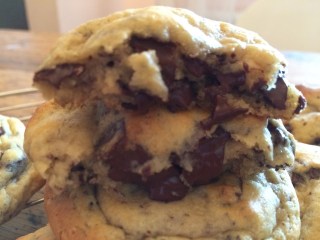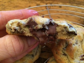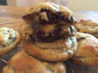 Etwa 10 Minuten auf dem Blech auskühlen, dann auf einem Kuchengitter völlig auskühlen lassen. Die Cookies bleiben länger weich und chewy, wenn ihr sie während des Abkühlens mit einem Küchentuch abdeckt, aber meist überleben sie den ersten Tag sowieso nicht und dann spielt es keine Rolle……