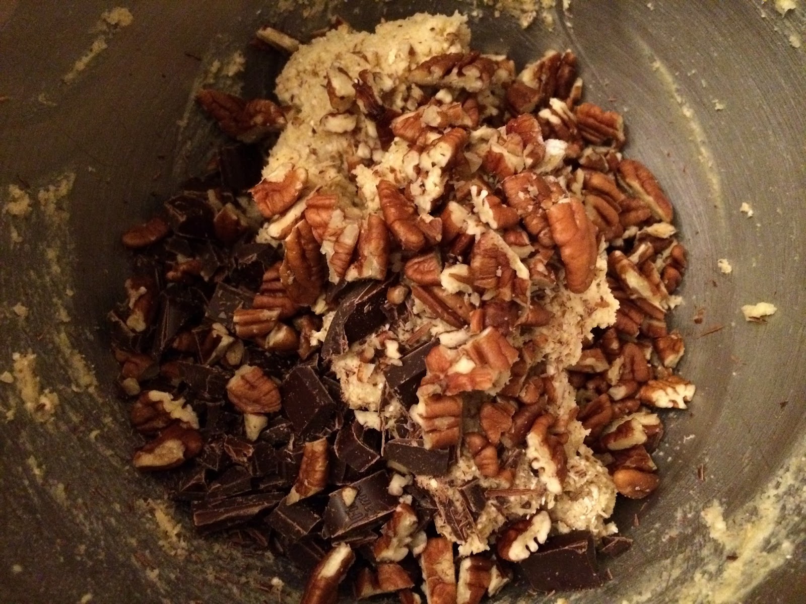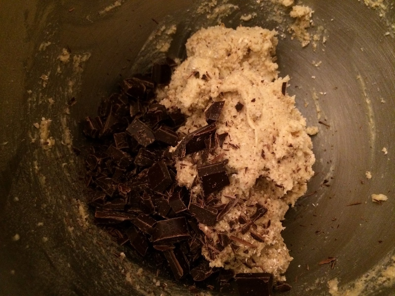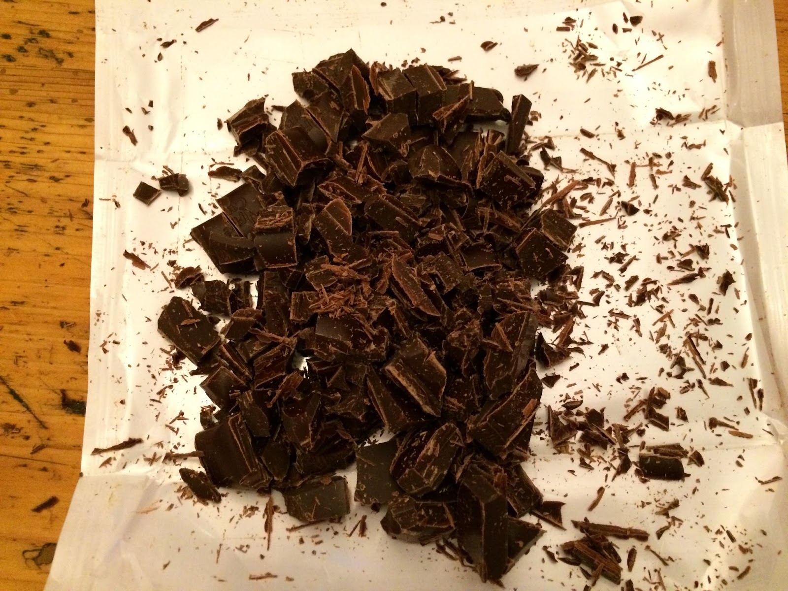 Etwa 15-20 Minuten im Ofen hellbraun backen. In der Zwischenzeit die Schokolade hacken…..