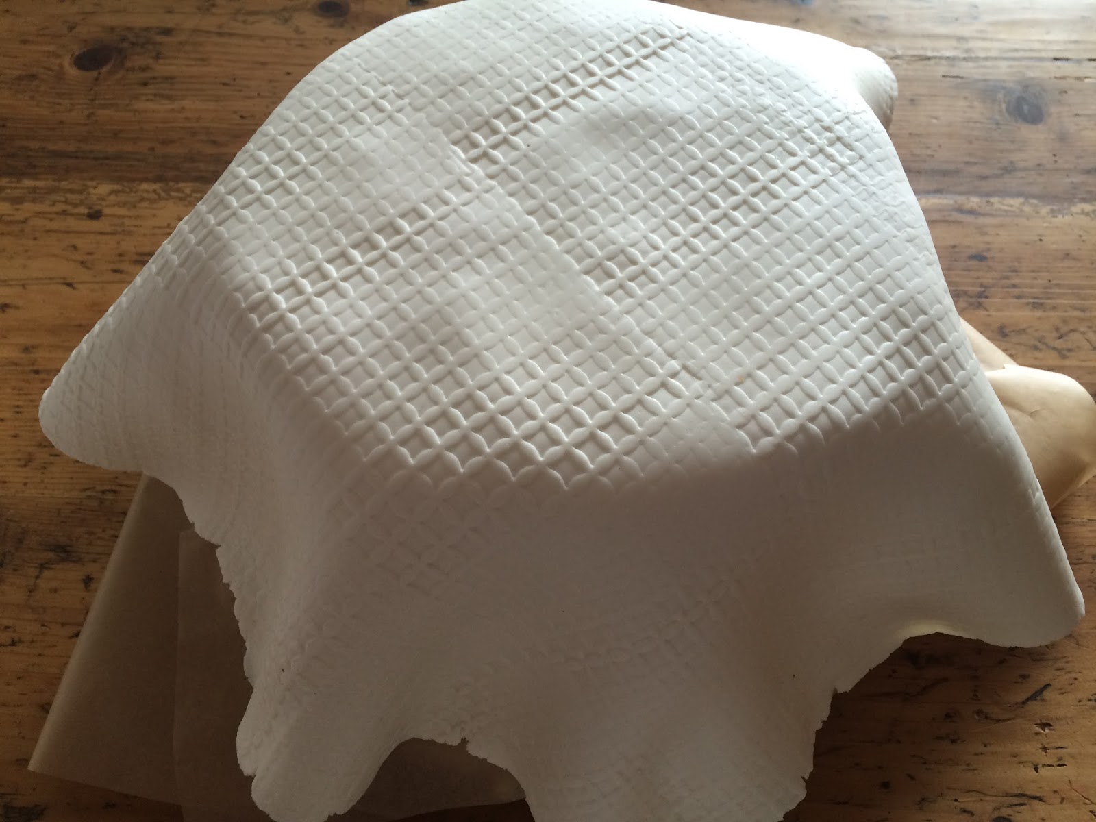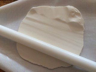 Danach den weißen Rollfondant weich kneten. Das dauert ne Weile und geht besser, wenn man die Arbeitsfläche und Hände mit etwas Palmin Soft einschmiert.