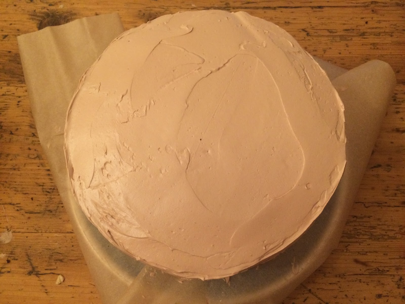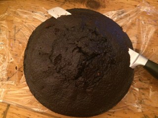 Dafür die Oberfläche der Böden „begradigen“. (Kuchenreste aufheben. Davon können wir prima Cake Pops machen. Rezept folgt.)