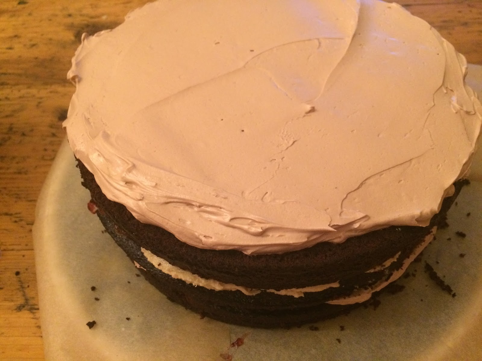…..und die Torte mit einer Winkelpalette oder einem Messer rundherum gleichmäßig damit bestreichen.