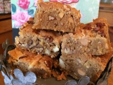 Erdnussbutter-Blondies mit weißer Schokolade und gerösteten Pekannüssen