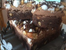 Brownies mit gesalzenen Nüssen, Schoko-Fluff und Marshmallows