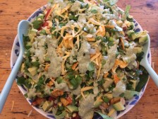 Taco-Salat mit homemade Ranch-Dressing, Hähnchen und Nacho-Chips