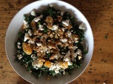Bohnensalat mit Zwiebeln, Petersilie, Schafskäse und Tomaten